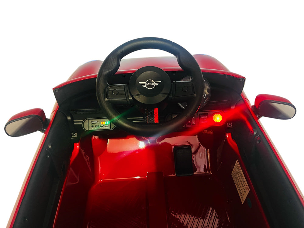 De afwerking is verfijnd: een glanzende lak, herkenbare Mini-details en een robuuste constructie maken deze kinderauto tot een echte blikvanger. Het Mini-gevoel komt pas echt tot leven als de motor start. Verder beschikt het kleine accuvoertuig over twee echte deuren, koplampen, een muziekmodule met muziekknoppen en een USB-poort om je eigen muziek af te spelen.